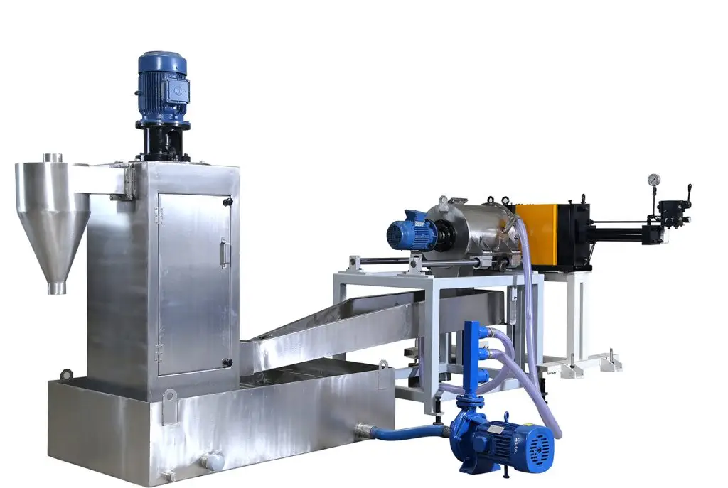 | Model No. | Output (Kg/Hr.) | Cutter Motor (kW/HP) | Dehydration Unit (kW/HP) | Water Pump (kW/HP) | Heating Load (kW) | Total Connecting Load (kW) |